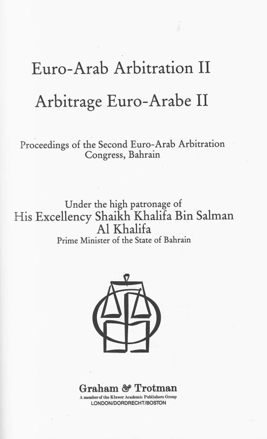 Proceedings of the Third Euro Arab Arbitration Congress, Jordan 1989, Graham & Trotman, London, 265 pages General Editor: Fathi Kemicha
